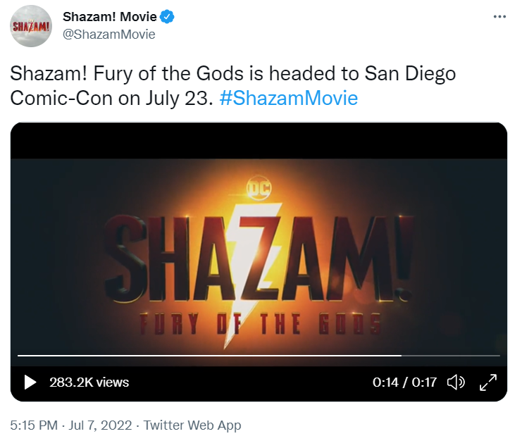 The official Shazam! Twitter account released a 17 second video featuring Zachary Levi. In the video he states, “Wassup. It’s me again. Just being a tease.” From this clip, we can assume that more will be revealed at Comic-Con.