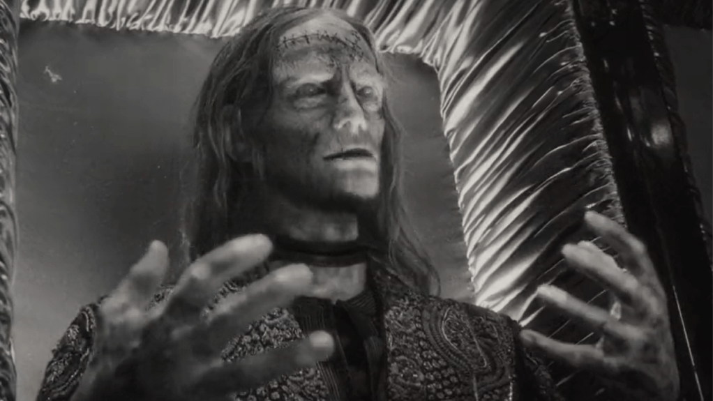 The trailer was shared on the Marvel Studios official Twitter account. It is shot completely in black and white and is extremely creepy, while still having a touch of humor. A character seen communicating from a coffin states, “Good luck, I’ll be rotting for you,” in response to the trailer’s set-up of “every hunter for themselves.”