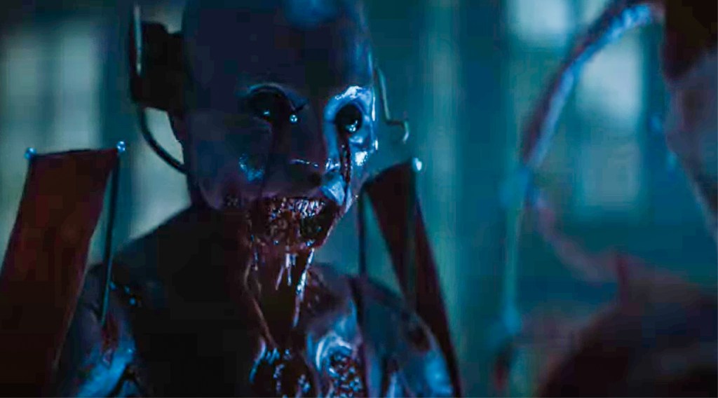 It then cuts to scenes of Riley investigating the box, saying, “they come to collect.” We are then confronted with scenes of the Cenobites, including a new addition, known as The Masque. Pinhead is also shown, and we finally hear Pinhead’s extremely creepy voice saying, “their blood, their pain…all for us.”