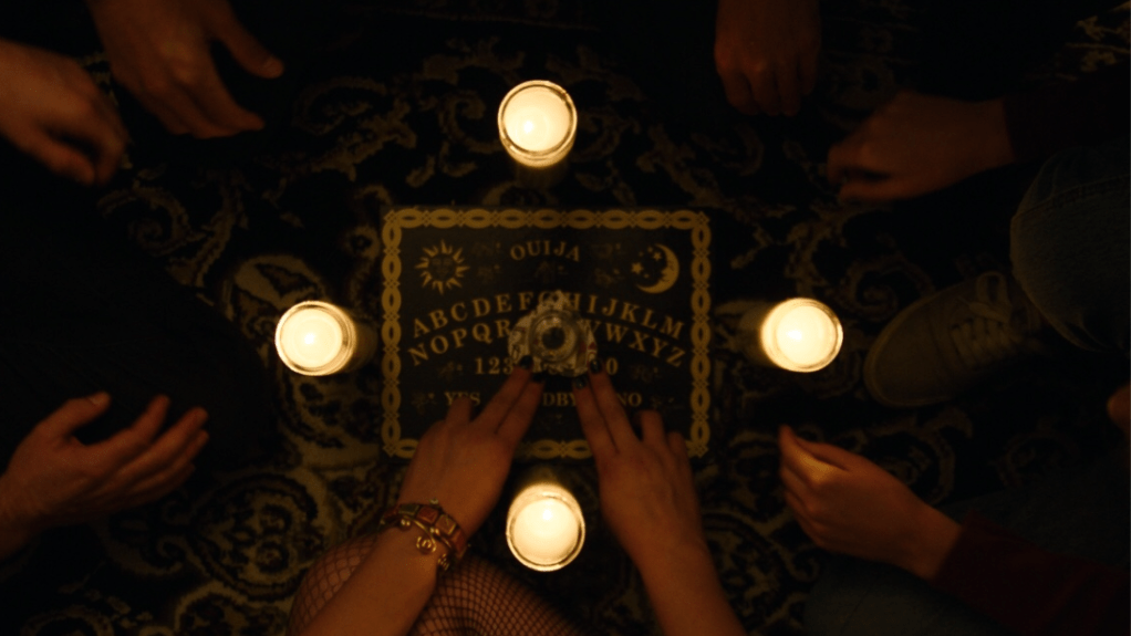 The film is split into two. The first part (“The Boogeywoman”) focuses on an expectant couple, Sarah (Belle Adams) and Simon (Ian Michaels). Sarah is convinced that she has been cursed, but her partner thinks otherwise. When they go to visit their friends, Melissa (Dina Silva) and Dustin (Tim Fox), Melissa who is a self-proclaimed witch, believes that she can help Sarah by using a Ouija board. Unfortunately, this leads to the darkness fully exposing itself.