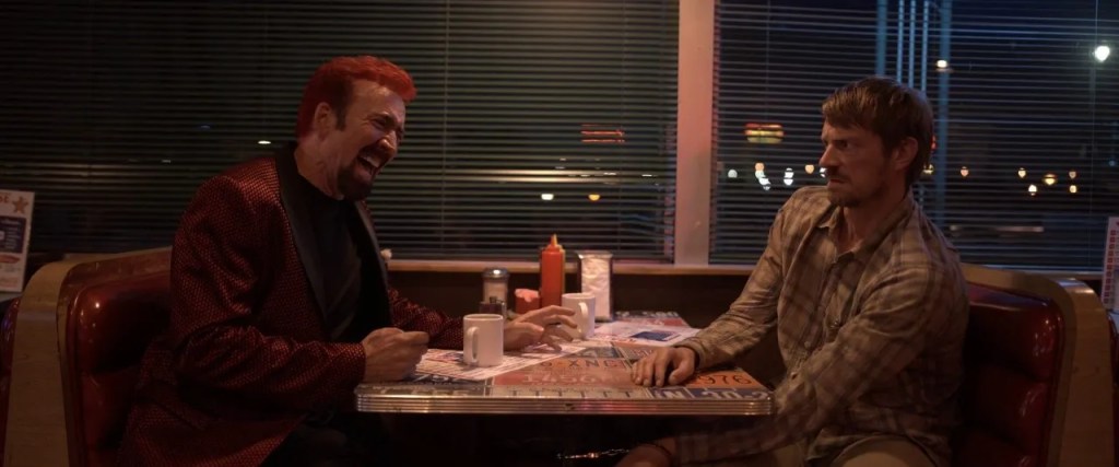 Nicolas Cage and Joel Kinnaman star in the psychological thriller “Sympathy for the Devil,” directed by Yuval Adler. The film follows a driver (Kinnaman) who gets caught in a game of cat and mouse when he is forced to drive a mysterious man (Cage).