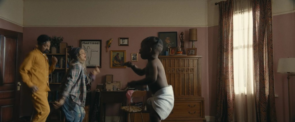 I’m a Virgo follows Cootie, a 13-foot-tall young Black man living in Oakland, California. In the first two episodes, we learn of his secluded upbringing, growing up on comic books and television. Eventually, his curiosity leads him to explore the outside world, where he befriends Felix (Brett Gray), Jones (Kara Young), and Scat (Allius Barnes).
