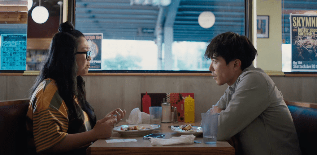 The film really finds its way as a character study on not only our main character but society itself. At its core the film is clearly a magnifying glass at how we are all looking to not feel lonely. The main character is clearly dissatisfied with their life trajectory and try to fill that up in anyway they can. Shortcomings also showcases how some representation can be seen as regressive by some but important to others in their own community. I really loved the idea of this being explored by the film. There is this want to have more people look like you on the big screen but how do you want that to look? I think the idea is that for minorities its okay to have hiccups in representation on screen but at the end of the day there should be enough room for everyone.