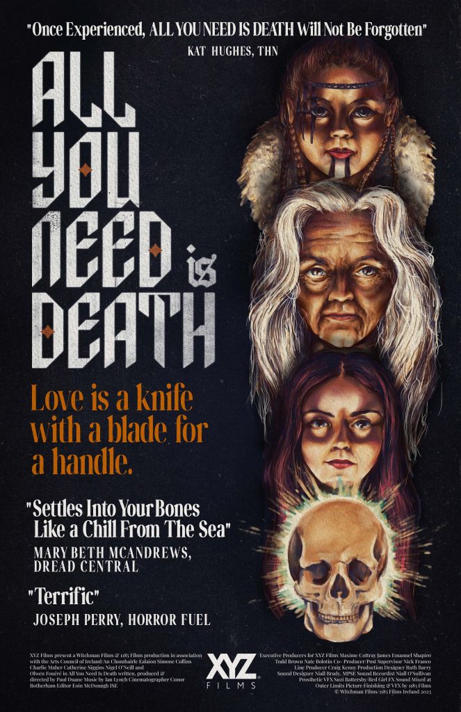 ALL YOU NEED IS DEATH stars Olwen Fouéré (Mandy, Sally Hardesty from 2022’s Texas Chainsaw Massacre), Charlie Maher (Blue Lights), Simone Collins (The Last Duel), and Gary Whelan (The Contract). The film had its World Premiere at Beyond Fest in Los Angeles, followed by an Irish Premiere at Cork International Film Festival.