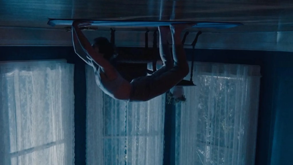 Found footage can be tricky to do sometimes as some tricks and scares can be seen as overdone or the audience may be questioning why the main character is even filming at a time like this. With this film, Anya has a reason to be recording with her upcoming YouTube channel. Also, the video calls bring more insight to her character and the film’s plot. Though, there are still some scenes that don’t make sense on how or why they’re recorded, but they still add to the creepiness of the film. The scares in this film aren’t cheesy; they’re unique in their own way. Sometimes, we’ll have the camera moving on its own while Anya is stuck doing a yoga pose and witness some terrifying sightings. Some of my favorite scares would happen in the background, where you would really have to focus to notice it.