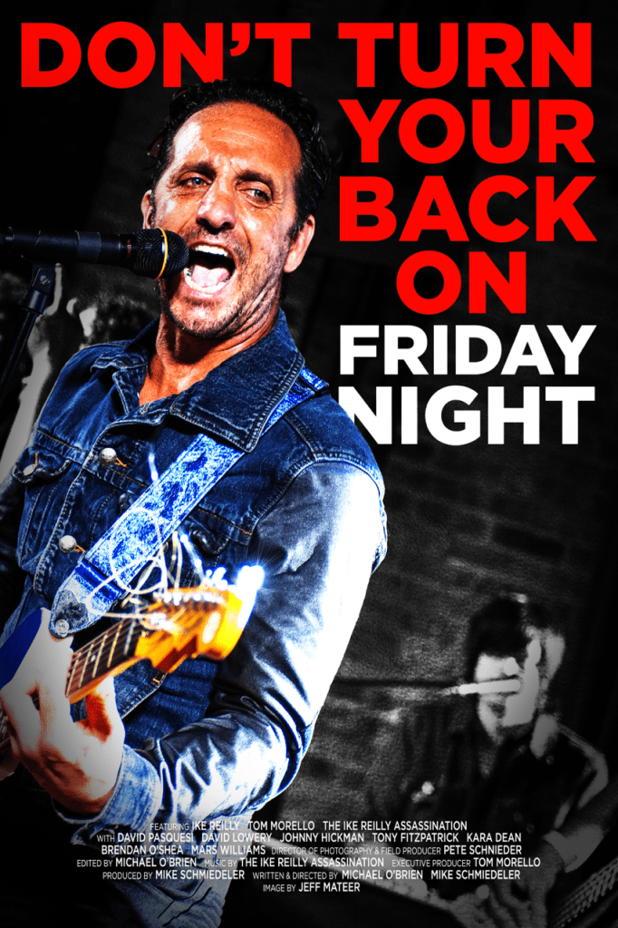 Don’t Turn Your Back on Friday Night is a Comandante Manifesto produced by Clean Blood Pictures LLC. In addition to Ike and his band The Ike Reilly Assassination – Phil Karnats, Dave Cottini, Pete Cimbalo, Adam Krier, Tommy O’Donnell, Ed Tinley, Shane Reilly, Kevin Reilly and Mickey Reilly, also featured in the film –David Pasquesi (“Veep,” “Book Of Boba Fett”), Tony Fitzpatrick (Artist, Actor – “Patriot”) and Mars Williams (Psychadelic Furs – band). Additional crew includes Field Producer and Director of Photography Pete Schneider (“Severance,” “The Squid and the Whale”), Postproduction Supervisor, Editor & Colorist Joe Langenfeld (“Osso Bucco,” “Waterwalk”), Postproduction Sound Mixer Ryan Staples (“Gangland,” “Inside The Iraq War”) and Director of Photography Sean Fahey (“For Kicks,” “Bailout”).