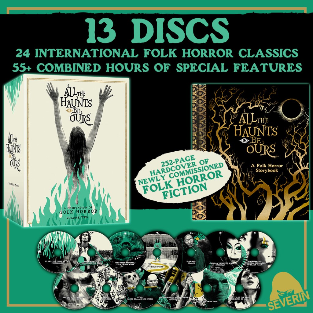 While cinema aficionados can currently pre-order ALL THE HAUNTS BE OURS: A COMPENDIUM OF FOLK HORROR VOLUME TWO exclusively on SeverinFilms.com, it will be available at retail on November 12, 2024, for $289.95.